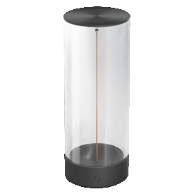 Decorative battery-powered, dimmable table luminaire with eye catching floating filament design, USB-C charging and integrated battery