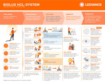The biolux hcl system from ledvance automatically adapts artificial light to changes in daylight thanks to an intelligent, patent pending algorithm – allowing users to choose the right dynamics for them at any time.