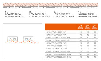 Whatever the local conditions, the various mounting options for LOW BAY FLEX mean you can always find a simple and professional solution.