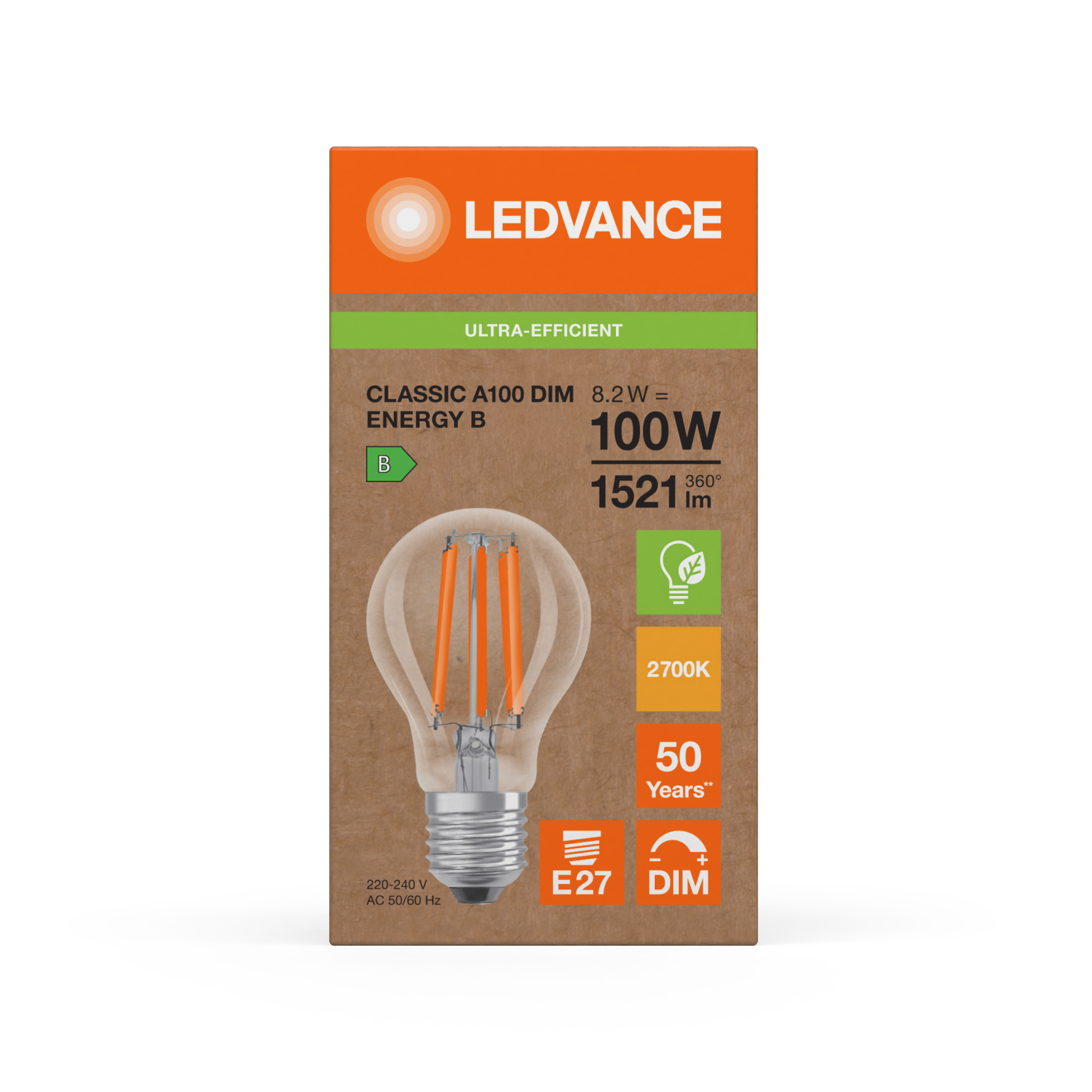 FC1 LED CLA 100 DIM SUP ULTRA EFFICIENT 8.2W 827 FILCL E27